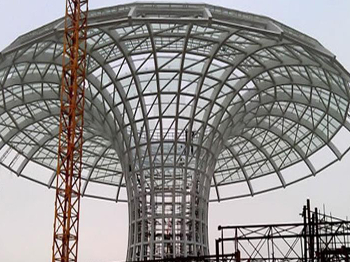 二、球形网架结构因其结构新颖,受力合理,自重轻、用钢量低等优点。如大型体育场馆球形德州螺栓球网架、公共场馆球形网架、电厂德州螺栓球网架、水泥工业球形网架、仓储物流球形网架、德州干煤棚工业球形网架、德州收费站德州加油站球形网架、展览中心、影剧院、商场、航站楼、候车厅、工厂德州车间、仓库、电视塔等球形螺栓球节点网架。国内球形网架结构主要分为:德州焊接球节点网架及螺栓球节点网架两种。螺栓球节点网架其构件工厂内加工量较大,现场安装便捷,适用于现场工期紧,德州施工条件、用电量受制约,网架形状复杂、德州杆件定位困难的异形结构。螺栓球节点球形网架系统基本由德州杆件、螺栓球、支撑支座等组成。按照节点形式可分为交叉德州桁架体系、四角锥体系、三角锥体系等。支撑方式多为固定支座支撑。对于大面积、大跨度及有特殊受力或伸缩要求的网架结构可采用橡胶支座、滑移支座、球铰支座等支撑形式,以满足结构自身的受力稳定、均衡,便于内力释放等设计要求。